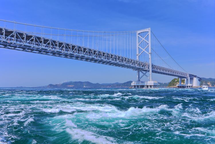 나루토 해협은 세계에서 유속이 가장 빠른 해류가 흘러드는 곳으로, 너비는 1.3km이며 도쿠시마현의 나루토와 효고현의 아와지섬 사이에 위치합니다.