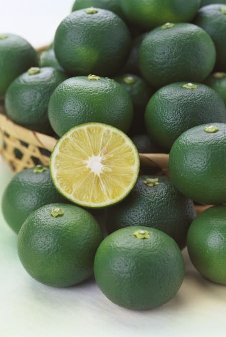 생긴 것은 라임과 비슷한 녹색인데, 맛은 자몽처럼 신 일본 청귤입니다. 이것만 먹기에는 너무 신맛이 강하지만, 생선구이나 전골 요리에 상큼한 산미를 더해주는 데에는 일품입니다.